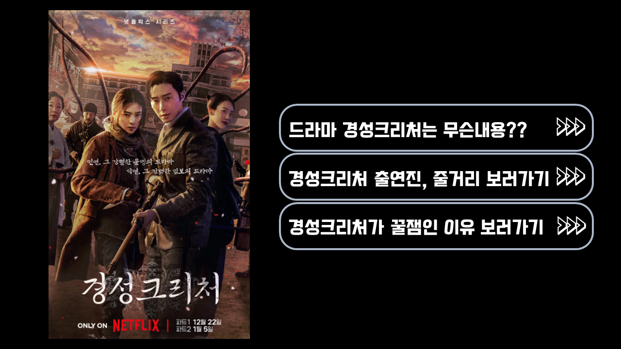 | 경성크리처 출연진 등장인물 줄거리 파트1 파트2 공개일 웹툰 나월댁 (0) | 2023.12.24 |